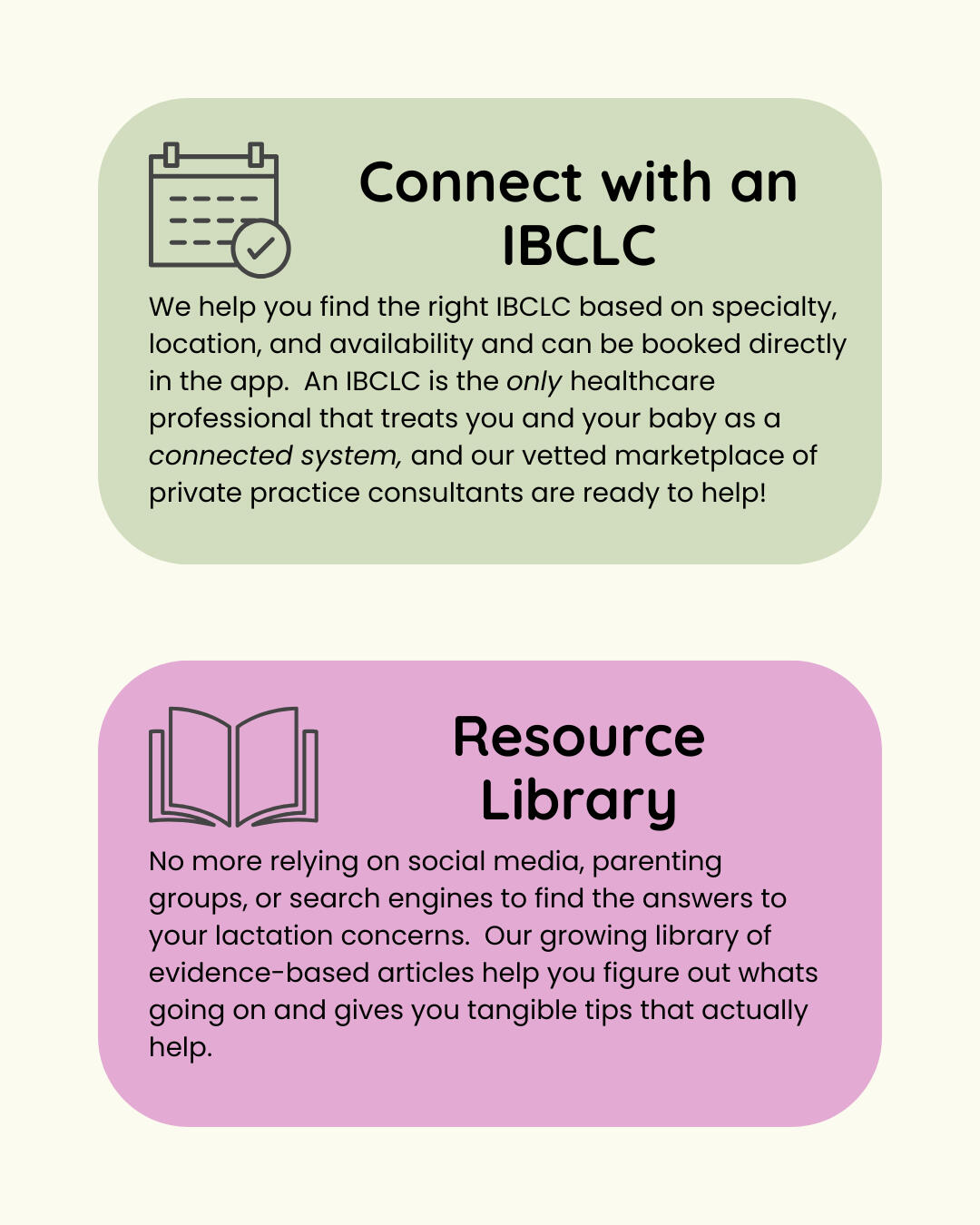 Lactation education, symptom tracking, and expert lactation support all in one HIPAA-compliant app. Created by an International Board Certified Lactation Consultant (IBCLC). Launching soon!