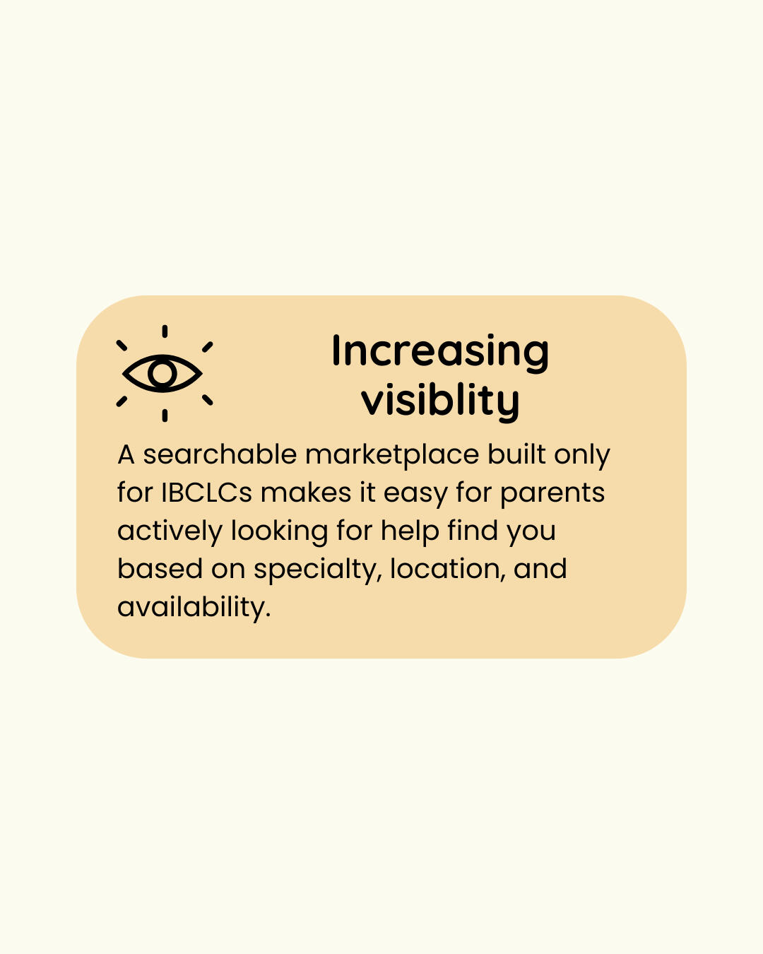 At Droplet, we are acutely aware of the obstacles private practice IBCLCs face trying to connect with the families that need us most. Insurance barriers, clinician reluctance to refer, and general lack of awareness of the value of an IBCLC all contribute to families missing out on timely, specialized lactation care when it matters most. Droplet's mission is to put a spotlight on the importance of the IBCLC in private practice and built the following features with you in mind.